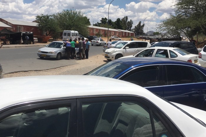 Drivers mobbing a cab at a hike point in Windhoek